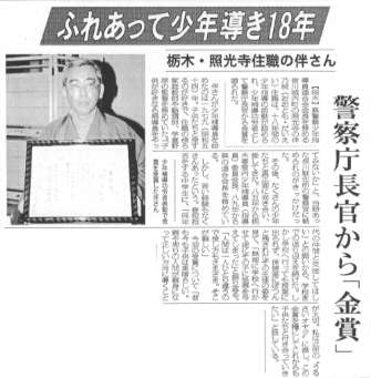 (おおともだいえい)住職は、18年間の少年指導の活動が認められ、少年補導功労者